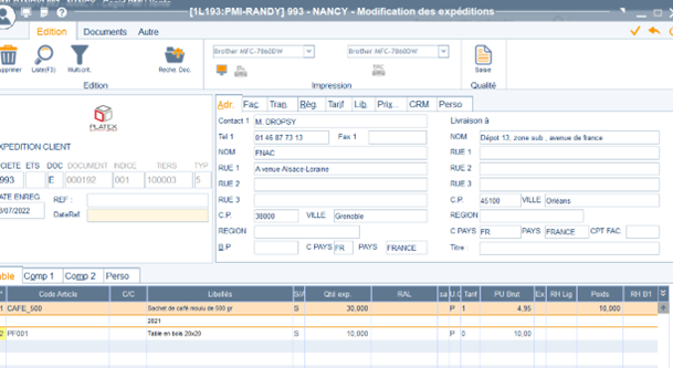 Nous allons faire un exemple avec un client qui passe plusieurs commandes et qui demande des BL et factures groupées.